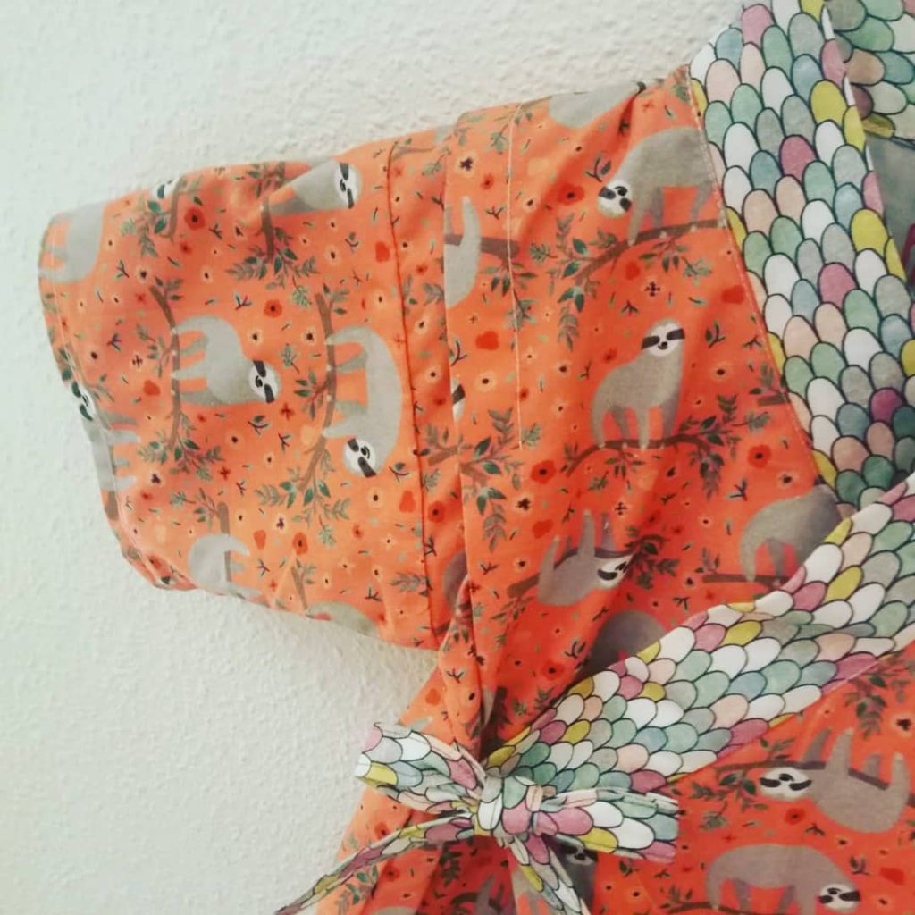 Hacemos una sección infantil de mini mochilas, bolsas de merienda, gorritos de tela y nuestros petos y quimonos reversibles son nuestra seña de identidad.